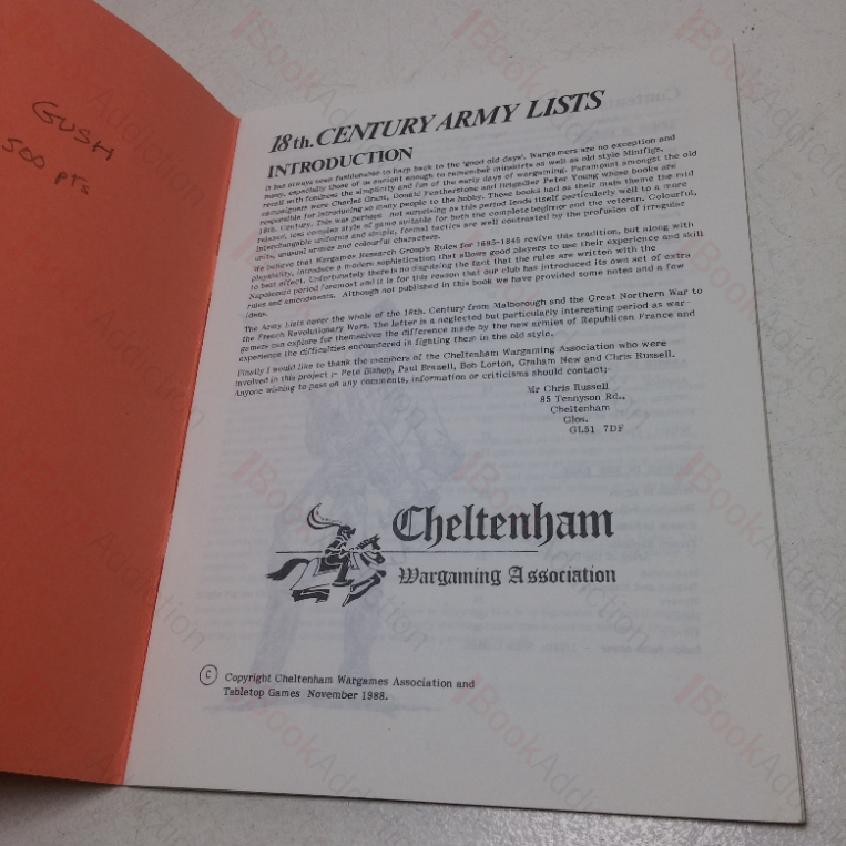 This copy comes from the collection of the late George R P Gush. Gush was head of history at West Kent College but is perhaps better remembered as a key contributor to the development of early wargaming, and as an active wargamer especially in Renaissance wargames. His Renaissance Armies (1975) has become a classic work on the topic. He founded the Tunbridge Wells Wargames Society in the late 1960s, remaining its chairman until 2007. A regular contributor to various wargaming and modelling magazines, he authored with Andrew Finch A Guide to Wargaming (1980) and the well-regarded Wargames Rules for Fifteenth to Seventeenth Centuries.