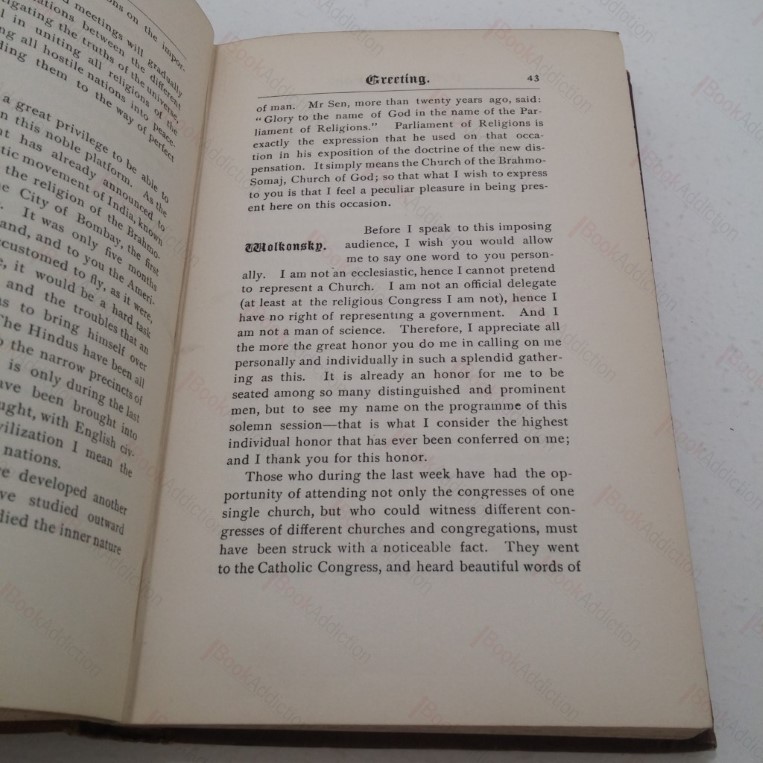 334pp. Brown cloth-covered boards with decorations and gilt titles (rubbed around spine, rounded on spine ends and corners). Slightly shaken. Internally neat, clean and bright. Extracts and reports from the Parliament of Religions held in Chicago on September 10-27, 1893 and contains 167 extracts from 115 different authors all on the topic of faith, prayer and denomination. A wonderful, revealing snapshot of the understanding of faith at the end of the 19th century. Very hard to find title in its original format.