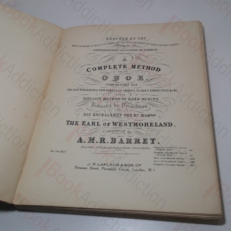 A Complete Method for the Oboe, Comprising All the New Fingerings, New Tables of Shakes, Scales, Exercises; with an Explicit Method of Reed Making