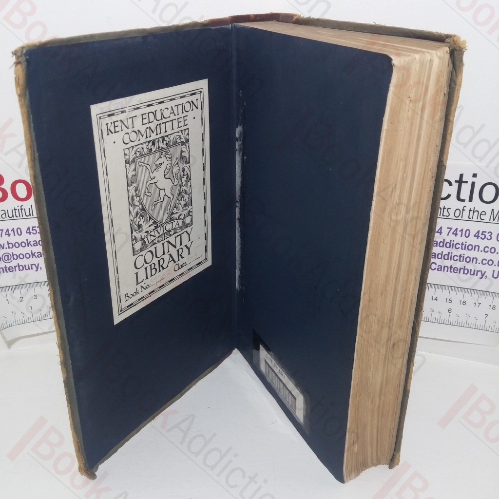 402pp, various black and white photographic plates and in-text illustrations. Quarter bound in brown leather under green cloth-covered boards; gilt titles on spine; top text block edge sprayed gilt, remaining edges untrimmed; black endpapers. 4to. Heavily rubbed spine and ends, shelf number written on; heavily rubbed and bumped corners with cloth worn through, staining to boards, indentation on rear. Fore and bottom text block edges tanning. Lender’s stamps and markings on front endpapers and copyright page. Pages tanning, volume quite loose. Otherwise internally neat and clean.Â