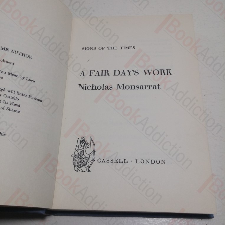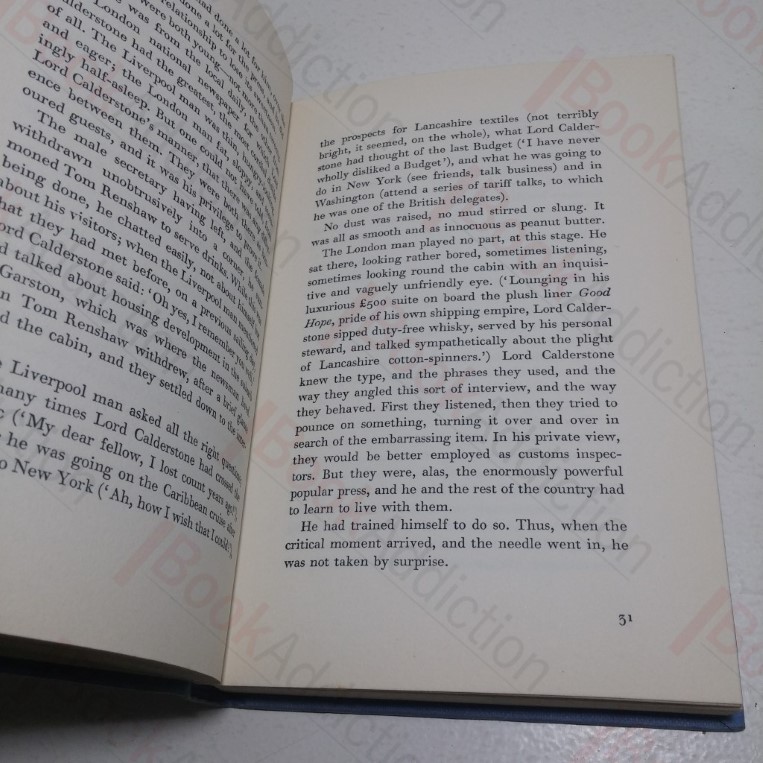 166pp. Blue cloth-covered boards, gilt titles on spine. Very lightly bumped spine ends and corners. Text block edges starting to fox. Internally neat, clean, bright and tight. Dust jacket has very light shelf wear, chipping to edges, mirrors book damage, price clipped. 12mo. Set in Liverpool Docks, the Captain of the ocean liner The Good Hope finds himself in the middle of a senseless strike which threatens to delay his ships departure and to make things worse his passenger list includes the shipping line’s chairman.