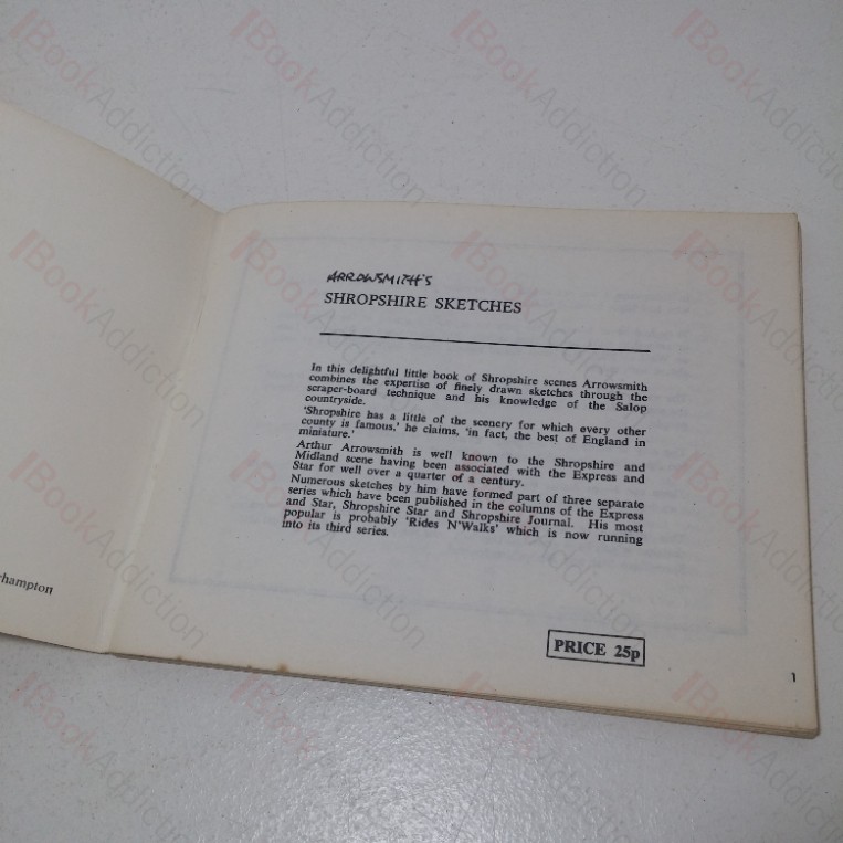 Two booklets. A Glimpse of Old Shropshire is a 70pp stapled booklet in stiff card covers and occasional small illustrations in text. Arrowsmith’ Shropshire Sketches is a 52pp stapled booklet in laminated card covers, extensively illustrated with Arthur Arrowsmith’s drawings of buildings and historic sites in Shropshire. Both are in very good condition throughout; A Glimpse of Old Shropshire has some gentle edge wear and a small marl on the front panel.