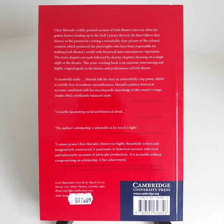 xx, 322pp. Illustrated. Indexed. Laminated card covers. Previous owner’s name on first page, else fine throughout. Traces the history and development of Irish Theatre in the often forgotten period up to the Irish Literary Revival, and on to the late 20th century, by creating a remarkably clear picture of the cultural contexts in which the playwrights who have been responsible for making Irish theatre’s world-wide reputation.