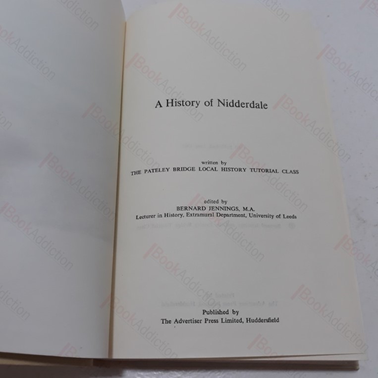 504pp, several black and white plates, colour frontispiece and fold-out map of the area tipped in on rear paste down. Beige cloth-covered boards with black titles on spine. Evidence of previous label on front free end paper. Otherwise internally neat, clean, bright and tight. 8vo. A selection of essays on the history of Nidderdale, Yorkshire, written by members of the Pateley Bridge Local History Group, covering topics such as The Early History of Nidderdale; Monastic Estates in Nidderdale; The Forest after the Black Death; Lead Mining; the Rise of the Linen Industry; Transport – Road and Rail; Medieval Trade and Industry; Farming Since the 18th century; Schools and Mechanics Institutes; Housing and Living Standards The Rise of Methodism etc.
