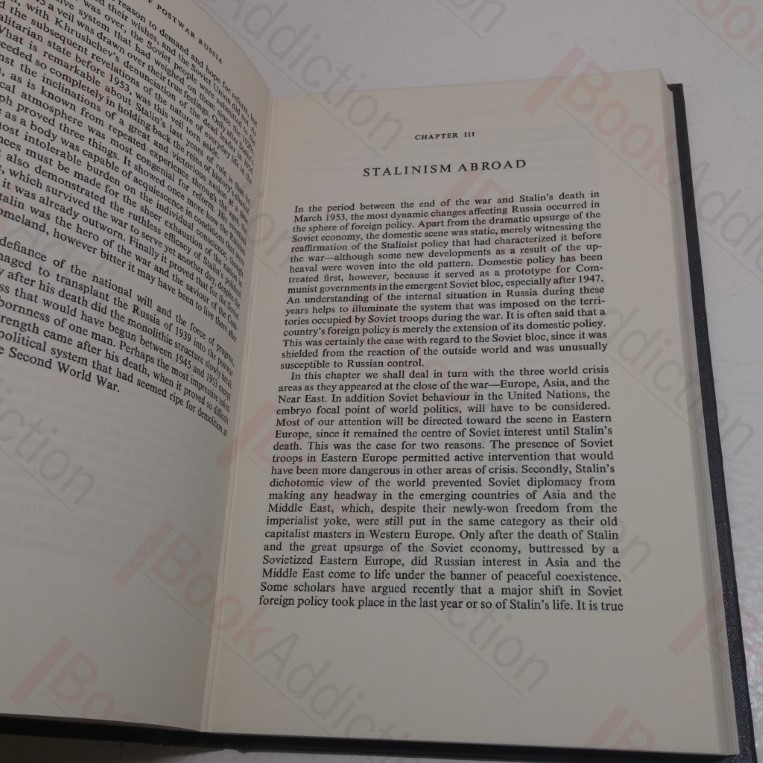 264pp. Black cloth-covered boards; blind series title on front, silver titles on spine. Top text block edge sprayed black. Internally neat, clean, bright and tight. Paper dust jacket spine sun faded, has very light shelf wear, stain on front, chipping to edges, price unclipped. Covers the closing stages of the second world war until the twenty-second Soviet Party Congress in the autumn of 1961. 8vo.