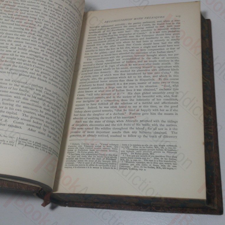 A new and enlarged edition. xxiv, 713 [1]pp, with two maps and facsimile of Cortes’ signature. In contemporary full brown calf’s leather with gilt deoorations front and rear, elaboration gilt decorations on spine with gilt lettering on red relief. All edges marbled. Marbled endpapers. 8vo. Boards cracked along front joint, spine leather faded and drying with cracked flap at spine base. Internally a hint of toning in extreme page margins else neat, clean and tight. A substantial, attractive volume.