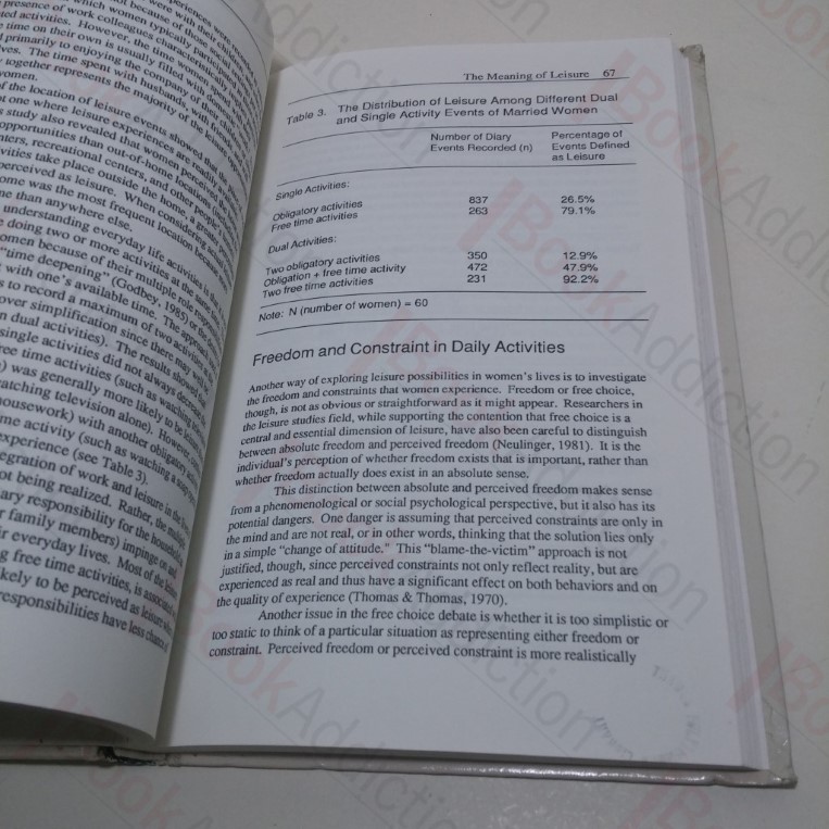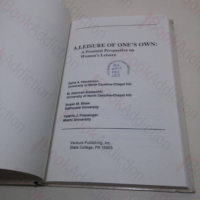 xii, 188pp. In illustrated, laminated boards. 8vo. Boards rounded at corners and spine ends. Ex lending library with usual markings including call label taped to spine, lending sheet and bar code on front endpaper and annotated small stamp on title page, else internally neat, clean, bright and tight. With chapters on Women and Leisure, Historical Perspective on Women’s Leisure, Feminism and Leisure, the Meaning of Leisure for Women’s Everyday Lives etc.