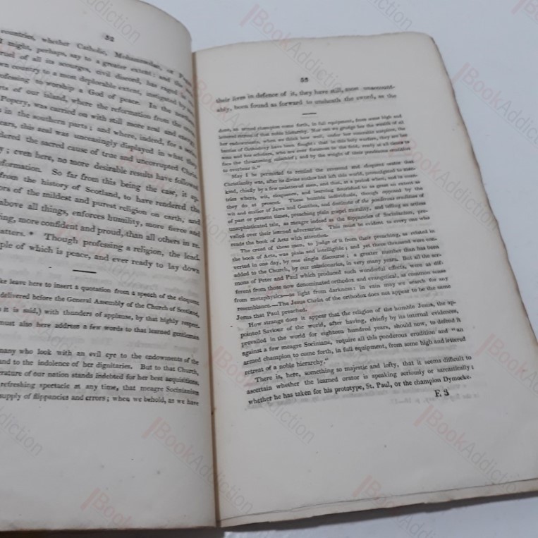 First (perhaps only) edition. Title page, 1-72, 1-67 [1]. In plain paper wrappers (wrappers worn, chipped, fragile and discoloured, both panels detached, backstrip absent). Half-title page toned, and some edge wear to pages throughout, else neat, clean, bright and tight throughout. Thomas Thrush’s rebuttal of Wrangham’s charge of the year before, in which he argued against Deism and Unitarianism and denominated Socinianism as an intermediate step between Deism and Christianity. LHD shows five copies – Universities of Cambridge, Oxford and Manchester; the British Library; and York Minister. Scarce.