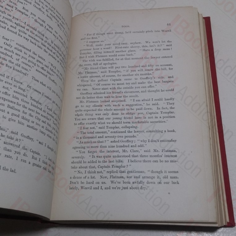 352pp, twenty colour plates (guarded). Red cloth-covered boards; black and gilt design on front and spine, gilt titles on front and spine; bevelled edges. Sun faded spine; bumped spine ends, cloth fraying. Boards lightly stained. Text block edges dusty. Rear endpapers has small amount of bleeding from rear board. Internally neat, clean, bright and tight. Dust jacket has very light shelf wear, chipping to edges, mirrors book damage, price clipped. Victorian novel set in Ireland about an admirable guardian and a foolish young man who is his ward. 8vo.