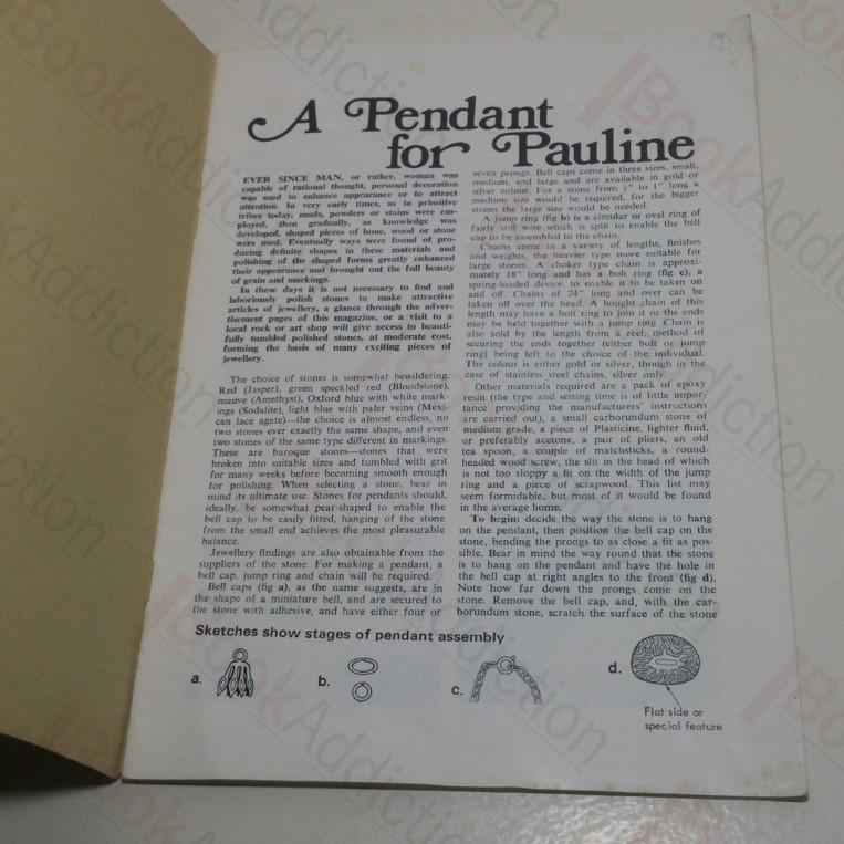 24pp stapled booklet in printed paper wrappers. Black and white illustrations and diagrams throughout. 4to. Covers are generally worn with some mild markings and lightly rubbed at corners and spine ends. Some very light occasional foxing but otherwise internally clean, neat, tight and bright. Reprinted from a series of articles which first appeared in Gem Craft, it discusses, briefly, the history and development of jewellery, and sets out the traditional methods by which is it made.