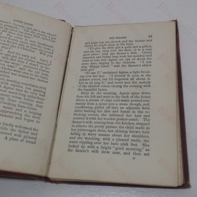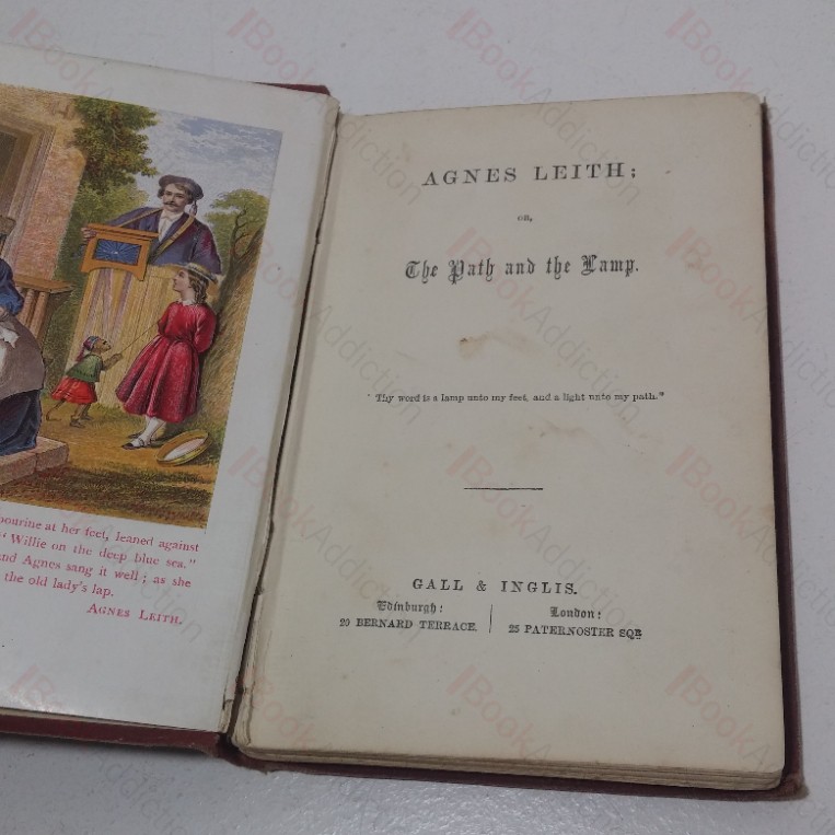 114pp, with colour plate frontispiece. Brown decorated cloth-covered boards, lettering on gilt relief front and spine. Bevelled edges. 16mo. Cloth-covered boards heavily worn all over, heavily rubbed at edges scuffed and fraying at spine ends. Front free endpaper absent. Previous owner’s name inked first present leaf. Shaken with some cracked gutters.