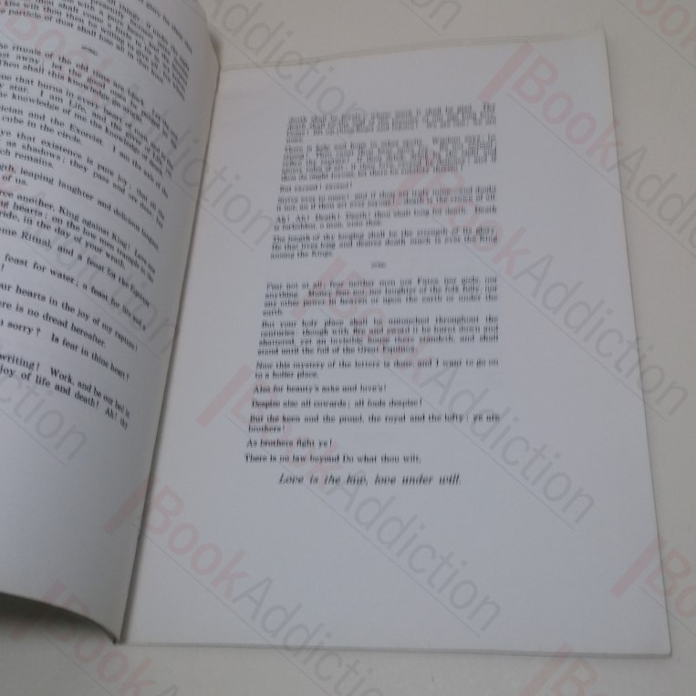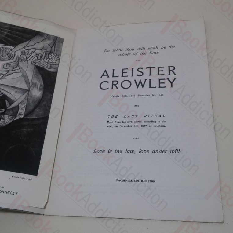 Facsimile edition. 12pp booklet in light card covers, printed and illustrated. Tipped in frontispiece. Slim 4to. Card covers have a little edge wear, especially along fore edge, faded around margins with a few mild crinkles on reverse. Internally the pages have a few creases around edges else generally neat, clean, bright and tight. Aleister Crowley was a British mystic, writer, poet and occultist, nicknamed ‘The Wickedest Man in the World’. A booklet was issued to mourners at his cremation in Brighton in December 1947, according to his instructions. This facsimile edition was printed using the original printing plates which were rediscovered in 1988 – as such, as claimed in the introduction ‘it is the only one to be produced from the original printing materials…and so in a sense is the only true second edition’. Scarce item.