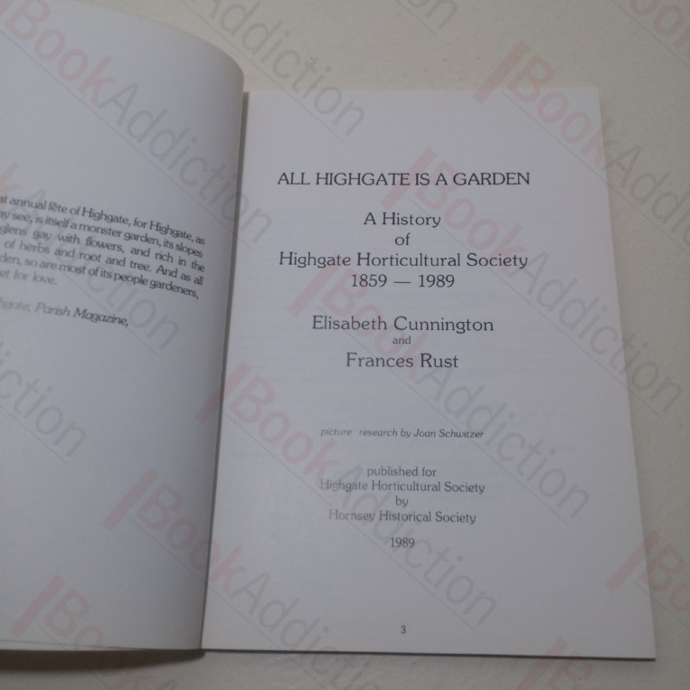 All Highgate is a Garden : History of Highgate Horticultural Society, 1859-1989