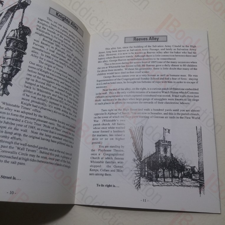 28pp, illustrated stapled booklet in glazed pictorial covers. Covers have a little shelf wear, internally neat, clean, bright and tight. Explores the back lanes, alleyways and passages in Whitstable, giving their history – through fires, flood and smuggling – and folklore. 12mo.