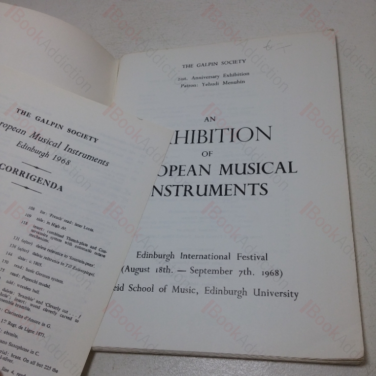 An exhibition catalogue published to coincide with the Musical Instruments exhibition held as part of the Edinburgh International Festival in 1968 to mark an anniversary of the Gilpin Society.