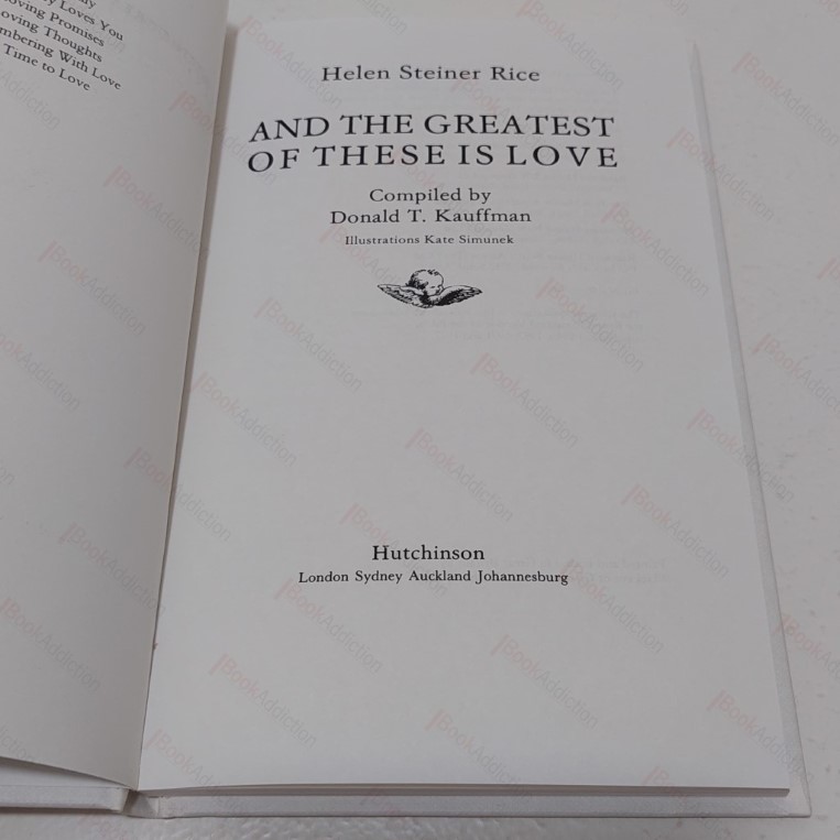Reprint. 96pp. Occasional page decorations by Kate Simunek. In white cloth-covered boards with gilt lettering to spine. Short inscription on front free endpaper, else internally neat, clean, bright and tight. In its original illustrated dust jacket (slightly rubbed on corners). Helen Steiner Rice’s poems were written to commemorate events. She often sent specially composed verses and poems to others – congratulations to a niece on her marriage for instance, or expressions of joy to a co-worker on the birth of their children, or offering solace to a grieving friend.