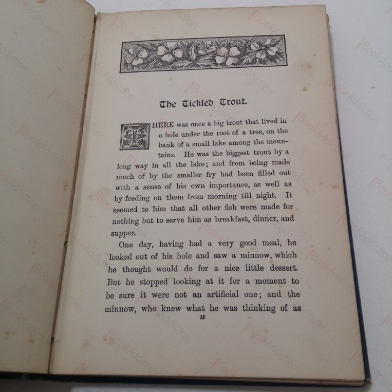 124pp plus publisher’s advert at rear. Volume undated but circa. 1900. Blue decorated, illustrated cloth boards with black lettering, illustrated front and spine. Covers are faded and soiled and spine strip heavily sunned. End papers tanned, some foxing throughout. Elegant prize presentation plate on the front paste down, indicating that the volume was once presented to F Dobson for regular attendance at a Luton Church School in 1902. A very hard-to-find title.