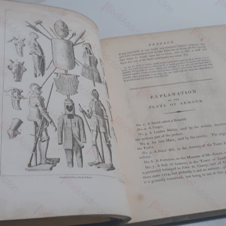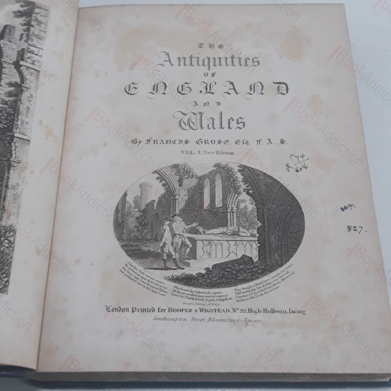 New edition. In a later, somewhat utilitarian binding. [1784] [iv] iv, 160, x, 64, plus 51 illustrations on plates, mostly engraved. Quarter bound in leatherette over strong blue cloth-covered boards, speckled text block edges (a little rubbed at corners, a few mild marks, small area of embossing rubbed over at base of front board). Internally neat, clean and tidy barring faint occasional spotting. Grose’s Antiquities of England and Wales is a compendium of historical monuments, considered one of the most important antiquarian publications of the 18th century. It was released in just over one hundred parts from 1772 to 1787 and republished in an eight-volume set in 1809. This volume includes Grose’s extensive preface, and addendum to preface and covers Bedfordshire, Berkshire, Buckinghamshire, Cambridgeshire, Cheshire, Cornwall, and Cumberland, with maps of each county. A large and heavy volume which will likely incur an additional charge for overseas delivery
