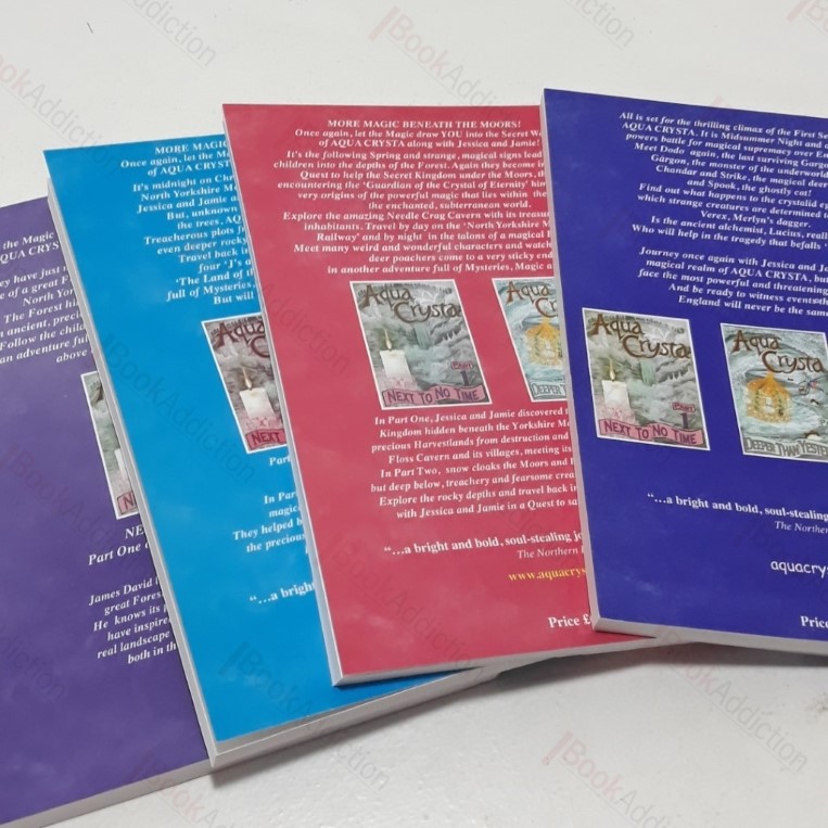 Part 1: Next to No Time, 248pp, printed card covers. Bookmark and Passport laid in. Part 2: Deeper than Yesterday. 168pp, printed card covers. Bookmark and Passport laid in. Part 3: Forever Crystal. 156pp, printed card covers. Bookmark and Passport laid in. Part 4: StoneSpell. 164pp, printed card covers. Bookmark and Passport laid in. First few pages of this part have a fold at the bottom. 8vos. All four parts signed and inscribed by the author on the title page. Inscription reads To Shirley.