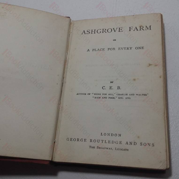A didactic work regarding community life on a rural farm for younger readers, once popular but now very hard to find in its original editions.  C E B was Charlotte Elizabeth Bowen (1817-1890), the wide of the long-time rector of St Mary’s in Chester.  She began writing for children in the 1850s.  Ashgrove Farm was her fourth children’s fiction boom. Her 22nd and last novel was Battle and Victory: The Story of a Painter’s Life, published in 1882.