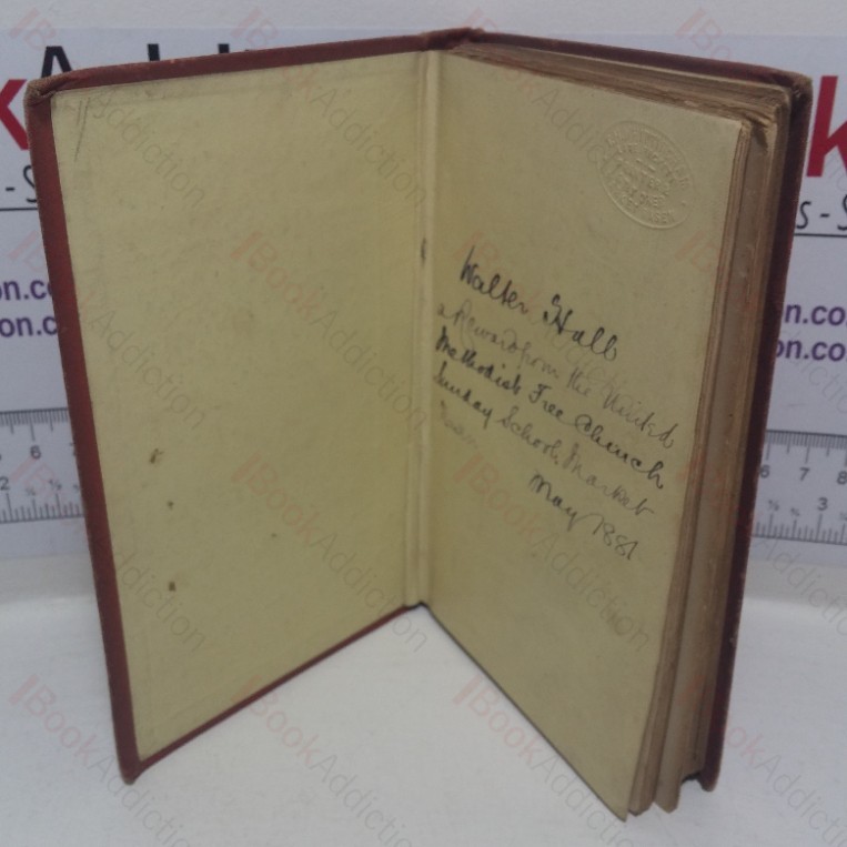 Undated but circa 1875 (and definitely not the first edition of 1866, which was illustrated). 160, 32pp.  Brown decorated cloth with small pictorial onlay, gilt decorations to spine.  All edges gilt.  Waxed endpapers. 16mo.  Boards are heavily worn and darkened, rubbed all round edges, scuffed and marked.  Presentation inscription, dated 1881, on front free endpaper.  Endpapers marked and spotted. Final page of publisher’s catalogue torn away over top corner.  Some spotting and minor marks throughout.  Heavily shaken but holding.