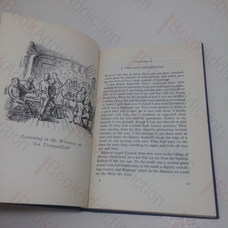First edition, second printing. 122pp, with line drawings by Edward Ardizzone on almost every page. In blue cloth-covered boards with gilt titles on spine. 12mo. Boards a little rounded on corners and spine ends, with hint of fading on edges. Top text block edge spotted. There is a small rust mark on the edge of the half title page with affects the subsequent page slightly, else internally neat, clean, tight and bright. In its original illustrated dust jacket, with some minor chips at edges, rubbed around spine and small nick on front spine joint. Leading illustrator Edward Ardizzone recounts his own brief adventures as an official war artist with the BEF in France, but the book is far more remarkable for his many drawings.