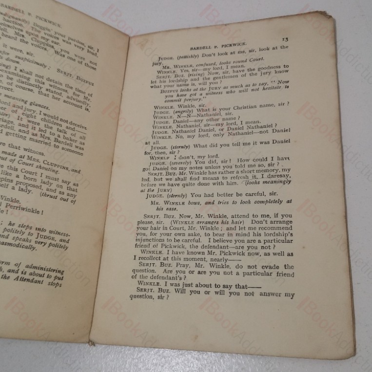 A dramatisation of the trial from Pickwick Papers, dramatised with the permission of Charles Dickens from his own personal reading copy of the novel by J Hllingshed.  Now hard to find.