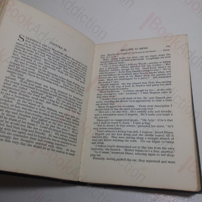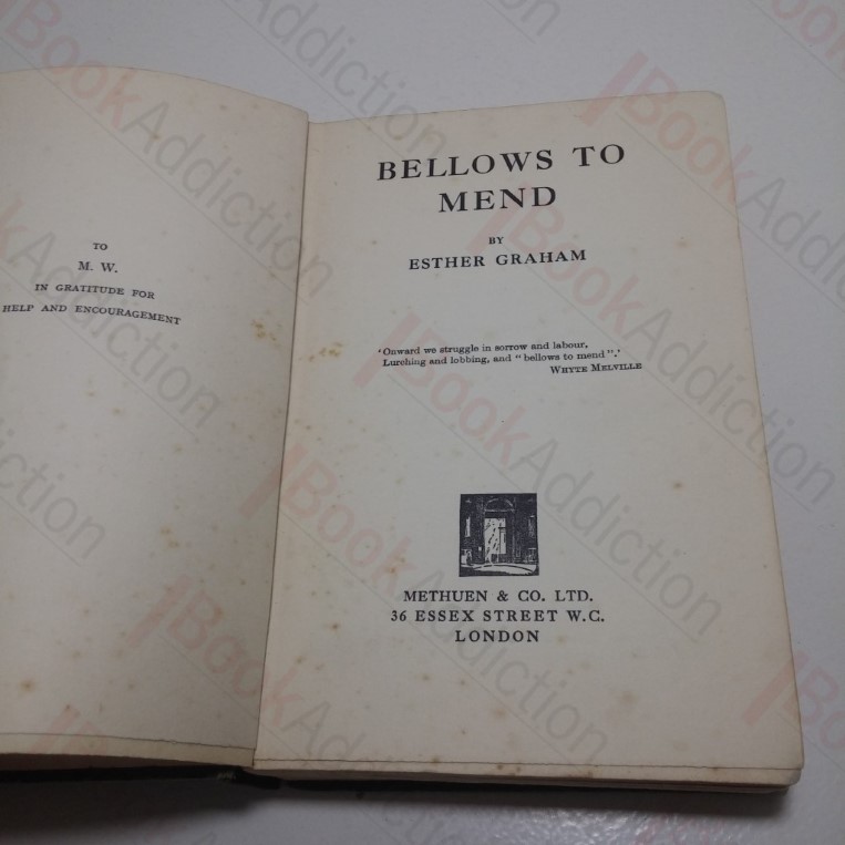 First edition, first printing. 252pp, with publisher’s catalogue at rear. In green cloth cover boards. Tall 12mo. Boards a little worn, rubbed and rounded at corners, slightly frayed on spine based, cracked at head of a faded and fragile backstrip. Internally there’s some faint, occasional spotting, more intense on endpapers. Bellows to Mend is novel about hunting. There’s a love story or two, and a little piece of London life in the early 20th century, but its the horses and hounds and pink coats who are the heroes, and a tired fox the villain of the piece. It was panned by reviewers at the time of its release in the 1930 but was popular enough to be reprinted and is now a classic piece of vintage fiction. Author’s first novel. A very hard to find title.