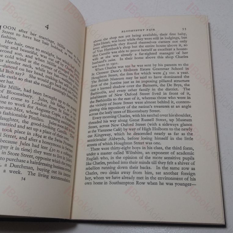 The story of a dressmaker, a milliner, a musician, a chocolate-maker and a family of lady’s hairdressers who, all having grown up more or less together in the London village of Bloomsbury, dominated by the British Museum, and, through hard work and genius become eminent. Madeline Henry, through a series of coincides so strange they could only occur in real life, found herself embroiled in the affairs of these families which she records here, and ultimately a part of the Bloomsbury Fair she describes. As the volume proclaims, this is a true story and all the people mentioned in the book are real people bearing their own names.