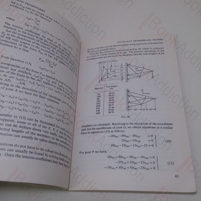 With sections on basic concepts, statically determinate trusses, redundant trusses, secondary stresses and the failure of braced frameworks and minimum weight frameworks.