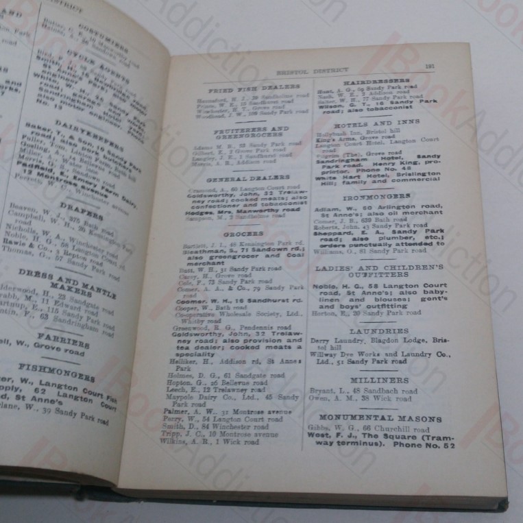 456pp. In green cloth-covered boards with titles on spine. 12mo. Cloth a little worn, bumped on one corner, other corners a little rounded, and a few small indentations along upper edge. Spine sunned and title lettering faded. Mild toning on text block edges. Binding a little loosened. Internally neat and clean. Trades’ Directory for the Bristol, Cheltenham and Gloucester area, accompanied by a Gazetteer and various contemporary advertisements.