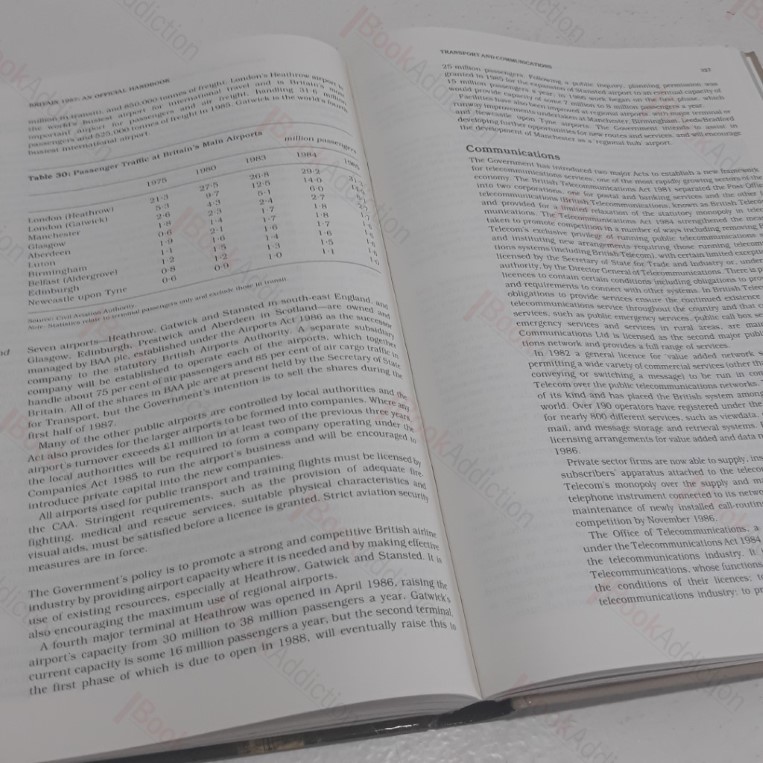 470pp. Sections of colour illustrations. Indexed. Laminated card covers (sharp and bright). Internally neat, clean and crisp. A very good copy. An invaluable handbook reference work on Britain as it as in 1987. Lots of facts and figures, trade, population, employment, public finances, transport and communications, etc. Maps, charts, diagrams.