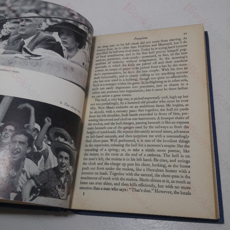 This book takes the form of a journey through Spain, from north to south, from Pamplosa via Madrid to Valencia, with descriptions of a number of bull-fighting scenes encountered en route. It centres on the rivalry of two leading matadors, one from the romantic approach and the other representing the classic method of bull-fighting.