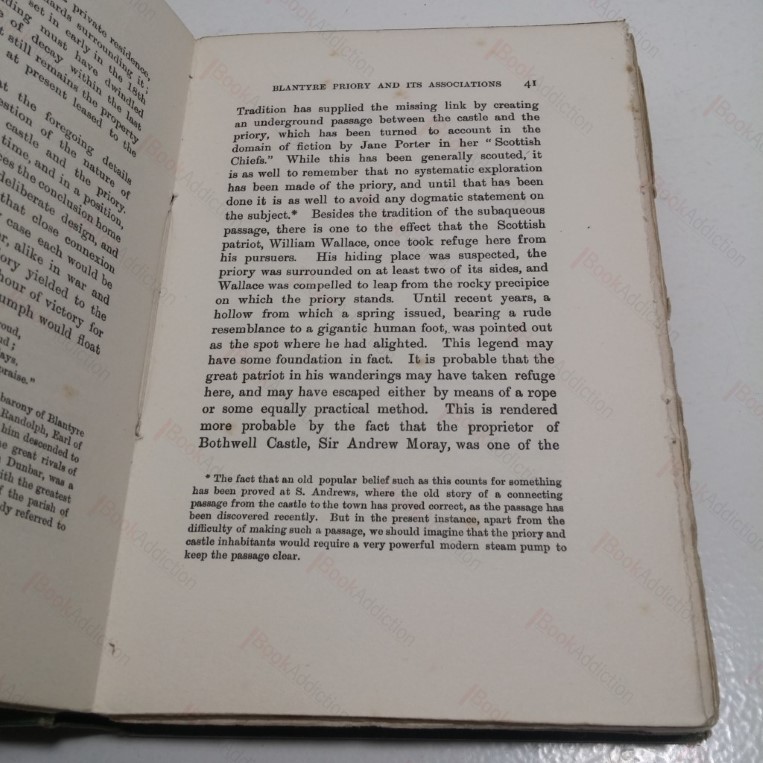 260pp, numerous black and white illustrations . Green cloth-covered boards; gilt titles and design on front, gilt titles on spine. Significant wear to covers bumped spine ends, stains on covers. Previous owner’s name on front free endpaper and half-title. Page edges untrimmed. Light foxing throughout, binding loosening. 8vo. Frontispiece is of Bothwell Castle. Hard-to-find title which paints a rich history of the local area of Bothwell and Uddington.