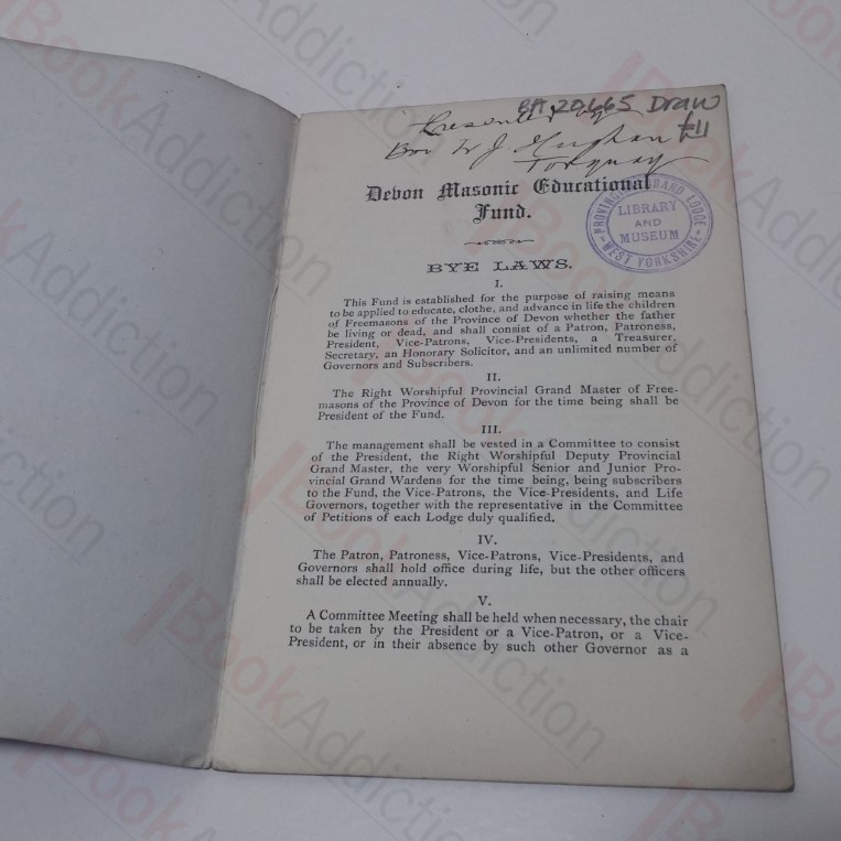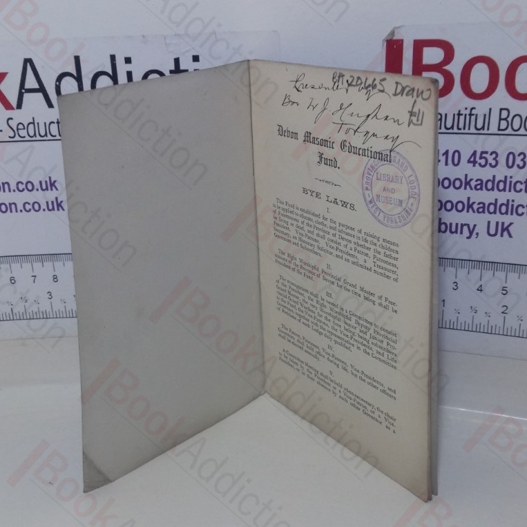 8pp small booklet in blue paper covers, printed with black lettering and decorations. 16mo. Covers a little shelf worn shiny, rubbed at edges and rounded at spine tips. Stamp of the Museum and Library of the Provincial Grand Lodge of West Yorkshire on front cover, repeated on first page, where there is also an inked previous owner’s name. Pages a little soiled and smudged with some edge wear.
