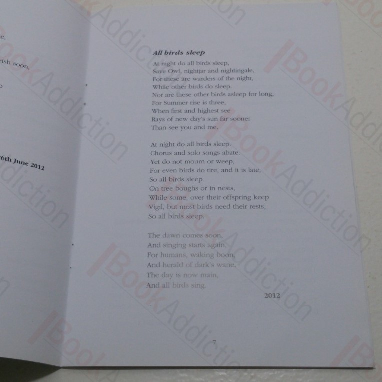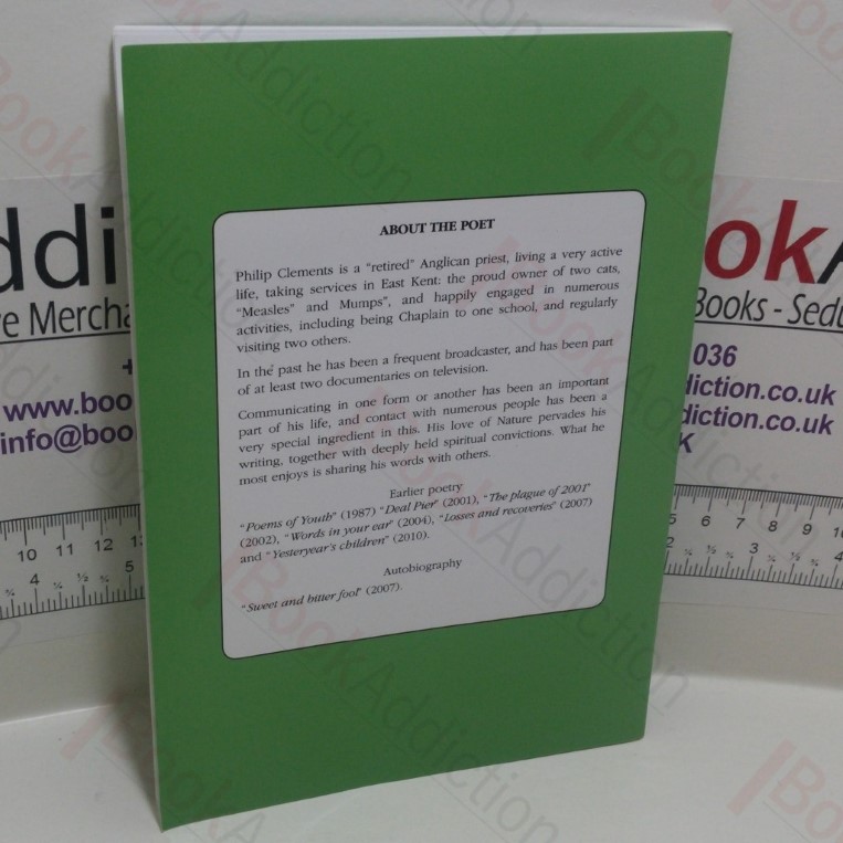 32pp, stapled booklet in glossy card covers (very slightly rubbed on edges). Internally neat, clean and bright. Clements is a retired Anglican Priest, still taking services in East Kent, broadcaster and film maker, and the proud owner of two cats, Measles and Mumps. This is his seventh collection of poetry, with verses that draw on his love of nature – and Measles and Mumps.