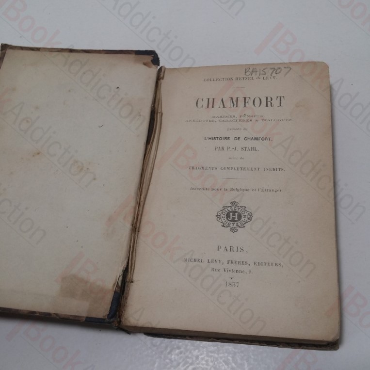 Chamfort – Maxims, Penesees,Anecdotes, Caracteres and Dialogues, Precede de L’Historie de Chamfort, suivi de Fragments Completement Inedits (Collection Hetzel and Levy)