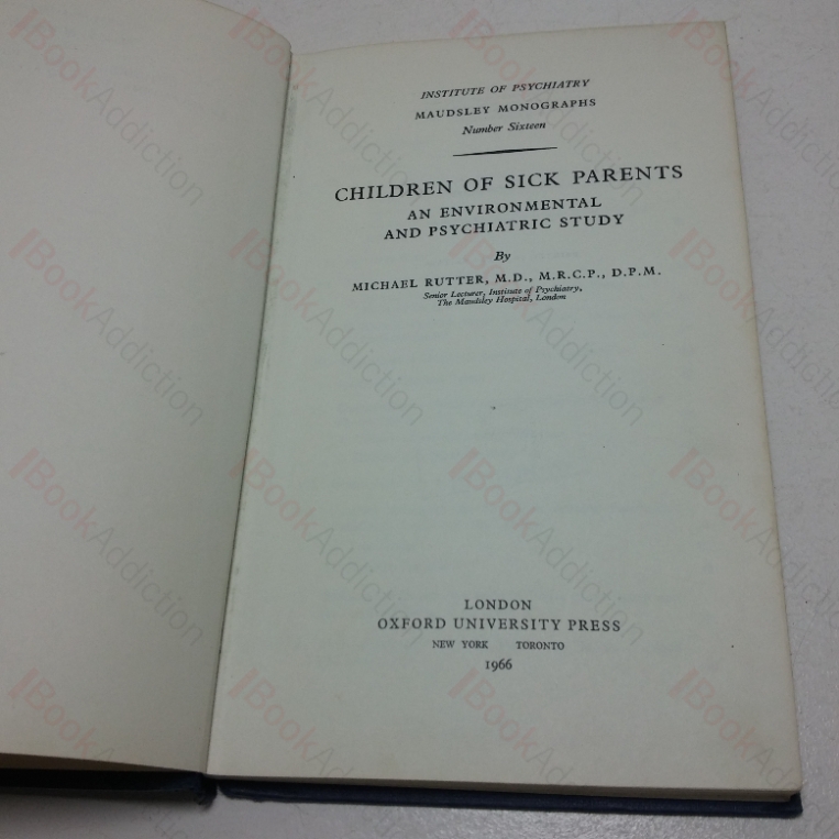 Children of Sick Parents: An Environmental and Psychiatric Study (Institute of Psychiatry Maudsley Monographs, No. 16)