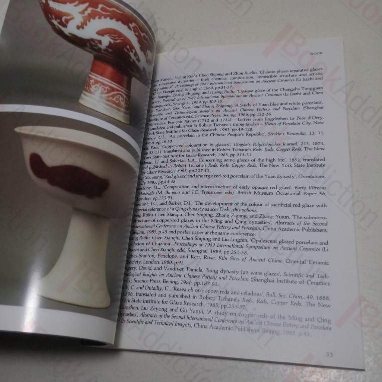 Contents includes: The Evolution of Chinese Copper Red; Scientific Study of Sacrificial Red Glazes; The Development of the Colour of Sacrificial Red Glaze with Special Reference to a Qing Dynasty Saucer Dish; The Micro-structure of Sacrificial Red Glaze; Study of Fresh Red Porcelain Glaze: Potters View.
