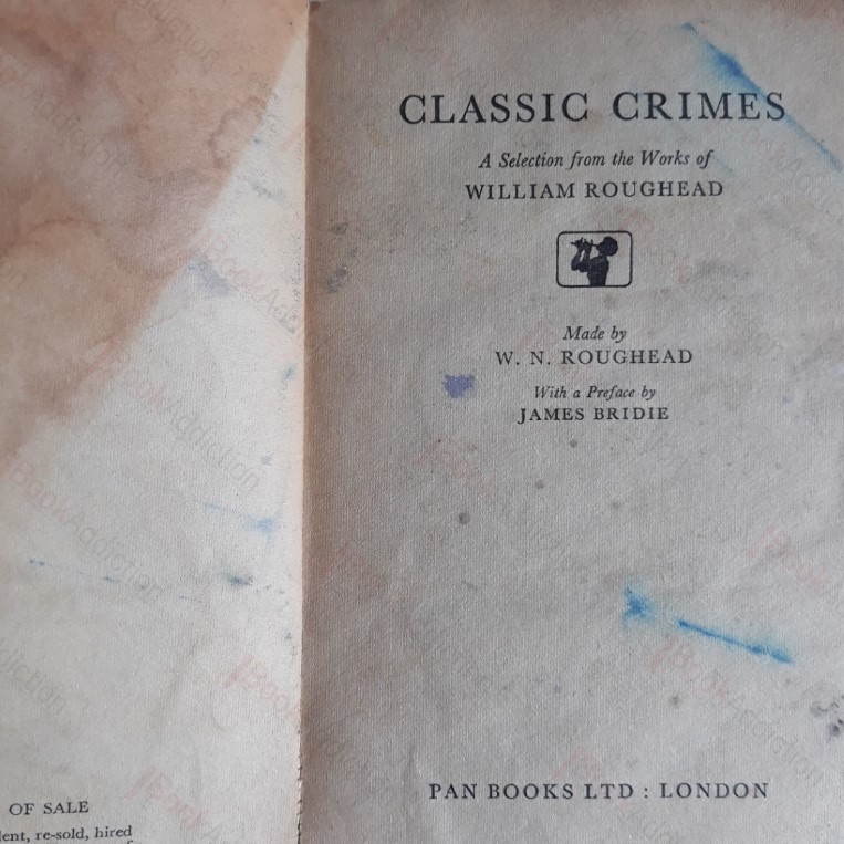 254pp. Classic Pan Giant card covers (rubbed, cracked, worn, chipped on edges and folds, marked) Pages a tanned and first couple fragile but holding. Stains inside front cover and on title page. A good reading copy but not in collectible condition. Roughead discusses seven sensational true crime cases distilled from the annuls of macabre and horrific crime. Cases include the West Port Murders, The Sandyford Mystery, The Slater Case, The Merrett Mystery, the Arran Murder and Miss Madeleine Smith, etc.