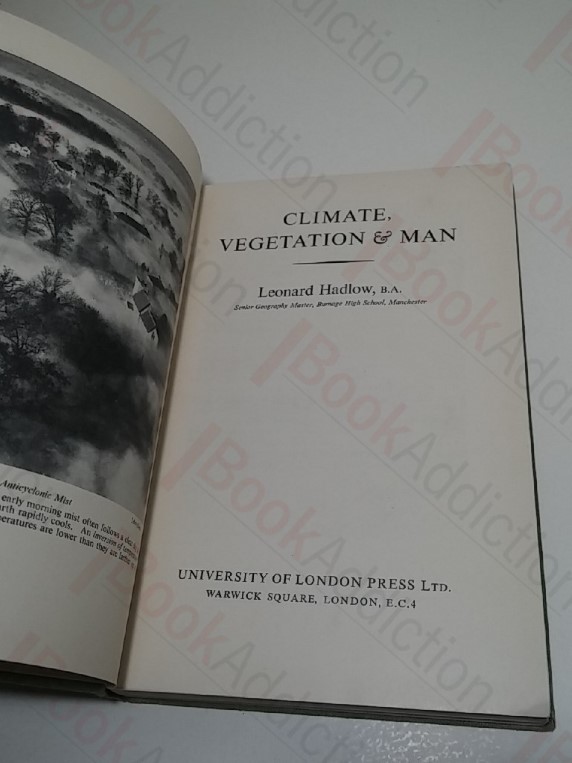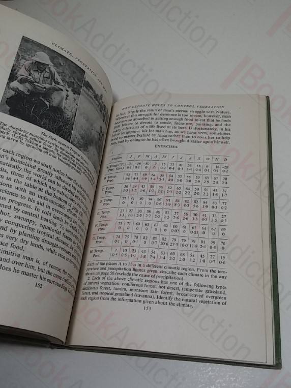 288pp. Green cloth-covered boards; black titles on front and spine; in-text black and white photographs and illustrations throughout. 8vo. Sun-faded spine and board edges, bumped extremities. Top text block edge just starting to fox, all edges starting to tan. School library lending sheet on front free end paper. Hinges cracked and stretched, volume loose. Internally neat, clean and bright. Examines climatic conditions which help to govern the distribution of vegetation, crops, animals and the life and work of man.
