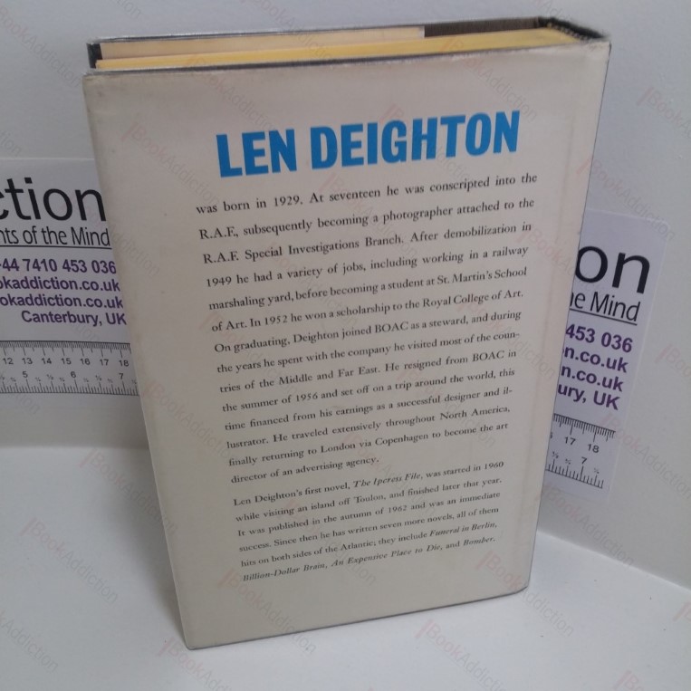 First US edition, first printing. Prelims plus 382pp. Deep red endpapers. In black cloth-covered boards with silver titles on spine and blue lettering on front (boards are strong, square, clean and sharp, just a little faded on extreme edges). Internally neat, clean bright and tight. Previous owner’s name on front free endpaper. Small scuff mark on lower text block edge. In its original dust jacket (one or two small chips on edges). Not price clipped. The dust jacket is now protected in an archival-quality mylar wrapper, fitted without the use of tape or adhesives. A brilliant documentary novel about the dream machine of the film world. Leonard Cyril Deighton is a British author whose works include cookery books, history and military history, but he is best known for his spy novels, including the series featuring the unnamed Harry Palmer. We have many books by Len Deighton in stock, including early, limited and first editions. Please inquire for discounts on multiple titles.