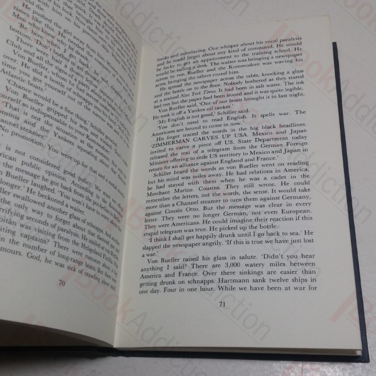 First Edition. 224pp. Blue cloth-covered boards, gilt titles on spine. Lightly bumped spine heel. Slightly cocked. Top text block edge starting to fox. Internally neat, clean, bright and tight. Dust jacket spine sun faded, has very light shelf wear, chipping to edges, price clipped. 8vo. Second World War adventure story featuring one man’s vendetta against a U-boat skipper.
