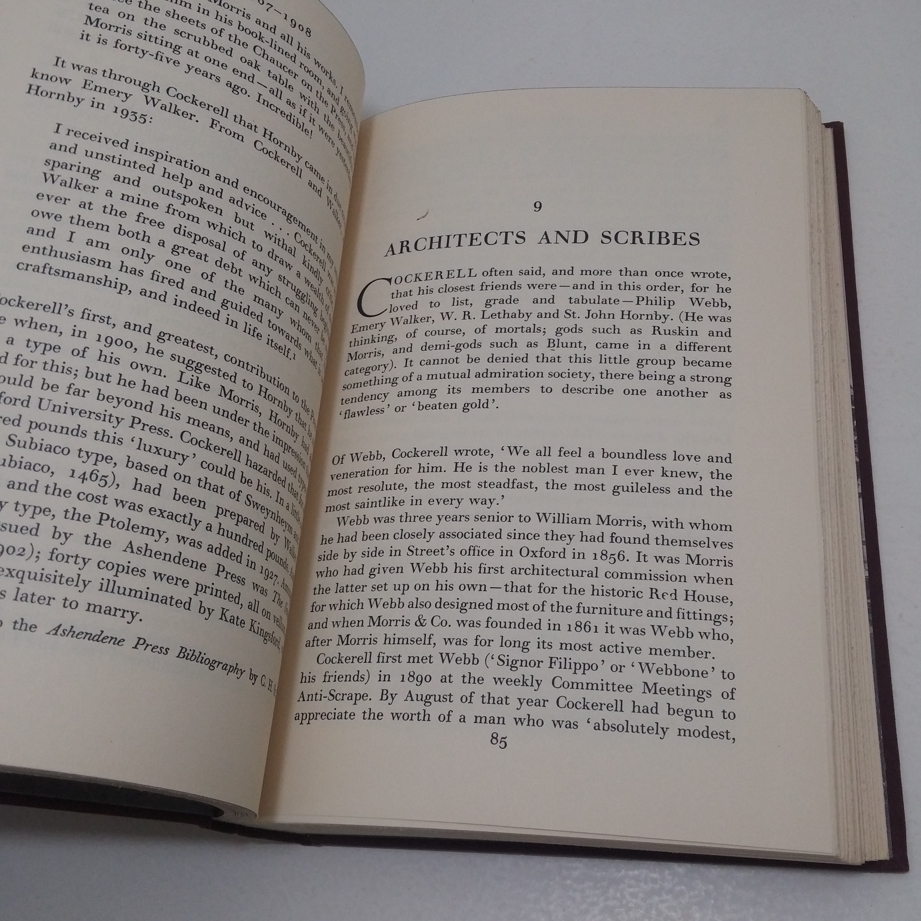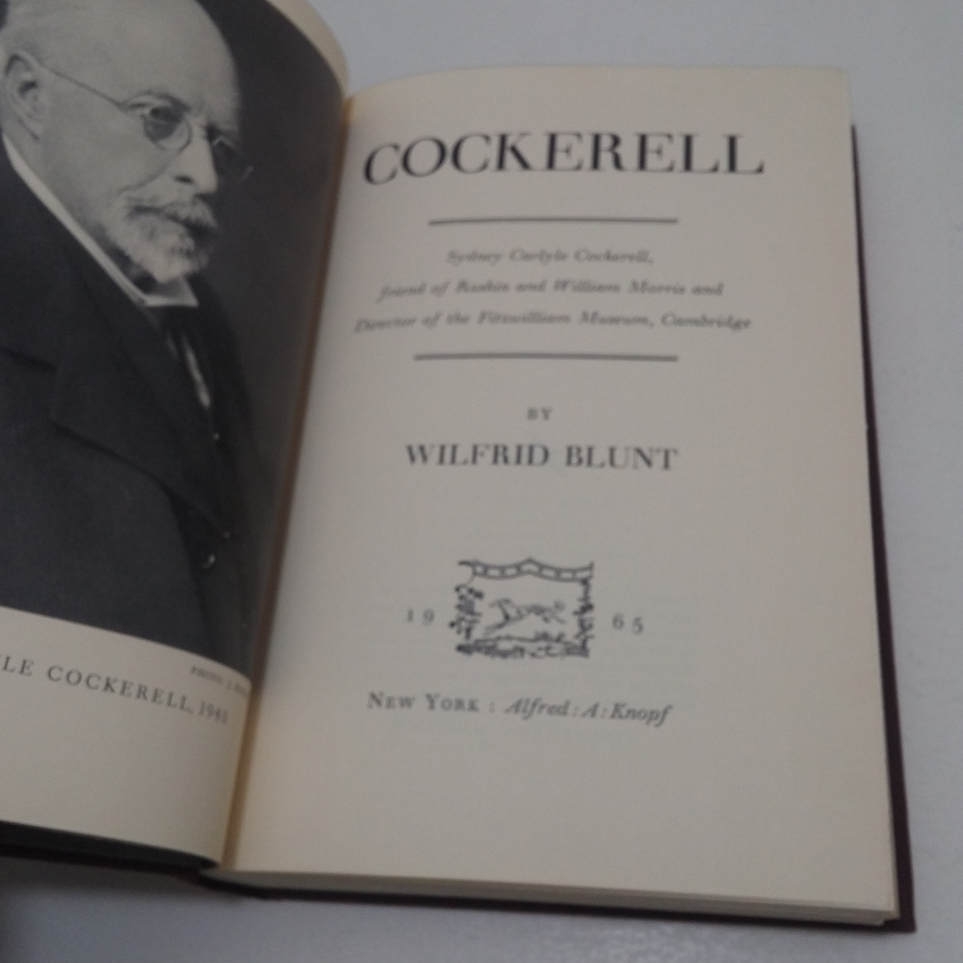 386pp; two sections of black and white photographs. Maroon cloth-covered boards; blind embossed design on front, gilt design and titles on spine; top text block edge sprayed black; illustrative endpapers; fore-edge untrimmed. 8vo. Lightly rubbed spine ends. Text block edges starting to tan. Internally neat, clean, bright and tight. Dust jacket protected with Brodart type sleeve, 1cm closed tear at front, has light shelf wear, mirrors book damage, price clipped. The life of Sydney Carlyle Cockerell, friend of Ruskin, and Morris, & Director of the Fitzwilliam Museum.