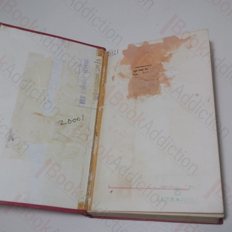 228pp. Red cloth-covered boards; black titles on spine. 12mo. Some mottling and tape residue to boards. rubbed corners and spine ends, spine head cloth fraying. Text block edges starting to tan and fox. Free endpapers missing, significant damage to pastedowns and first/last pages. Volume may have been repaired, glue residue at hinges. Title and half-title page has perforated lender’s name. Internally neat, clean, bright and tight. Dust jacket rippled, has fold all the way along bottom edge, light shelf wear, mirrors book damage, not price clipped.