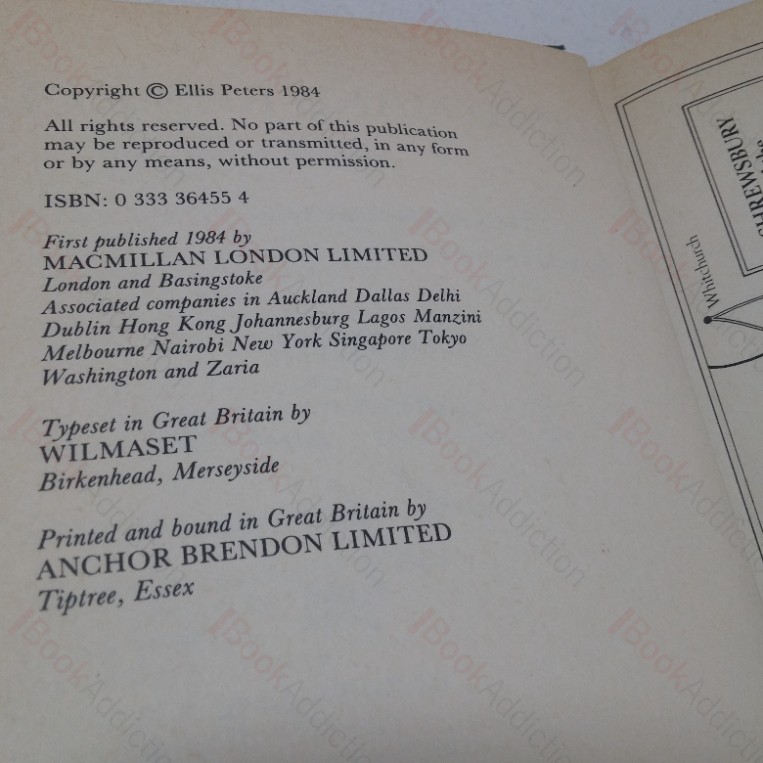 First edition, first printing.  Signed and inscribed by the author (both as Ellis Peters and Edith Pargeter) on the title page to family members Mavis and Roy.  192pp.  Green cloth-covered boards, gilt-stamped lettering on the spine.  8vo.  Cloth very slightly round at base of spine.  A hint of toning to text block edges and page faces.  In its original dust wrapper, very slightly bumped on extreme edges.  Dust jacket now protected in an archival quality Mylar wrapper fitted without the use of tape or adhesives.