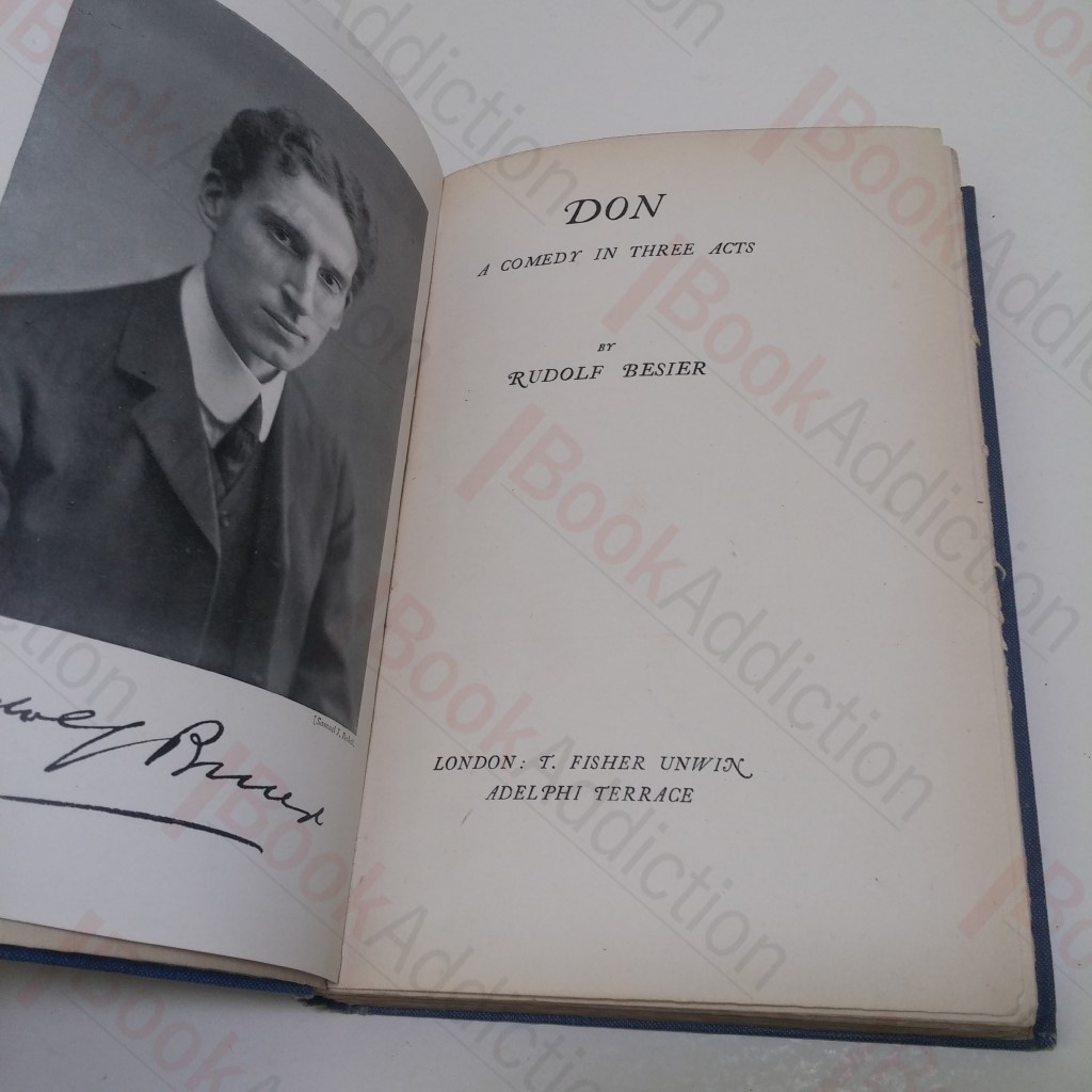 Undated. 176pp. Blue cloth-covered boards, black and red illustration on front, rear and spine, gilt titles on front and spine, black and white photographic frontispiece; bottom and fore text block edges untrimmed. 12mo. Boards lightly worn and moderately soiled and stained. Spine moderately sun-faded and worn around edges. Spine ends and corners moderately rubbed and rounded. Top edge dusty; remaining edges tanned. Endpapers lightly tanned and foxed, signed by the author on the front free endpaper. Half-title page moderately tanned. Frontispiece verso moderately tanned. Internally neat, clean and tight. Playscript.