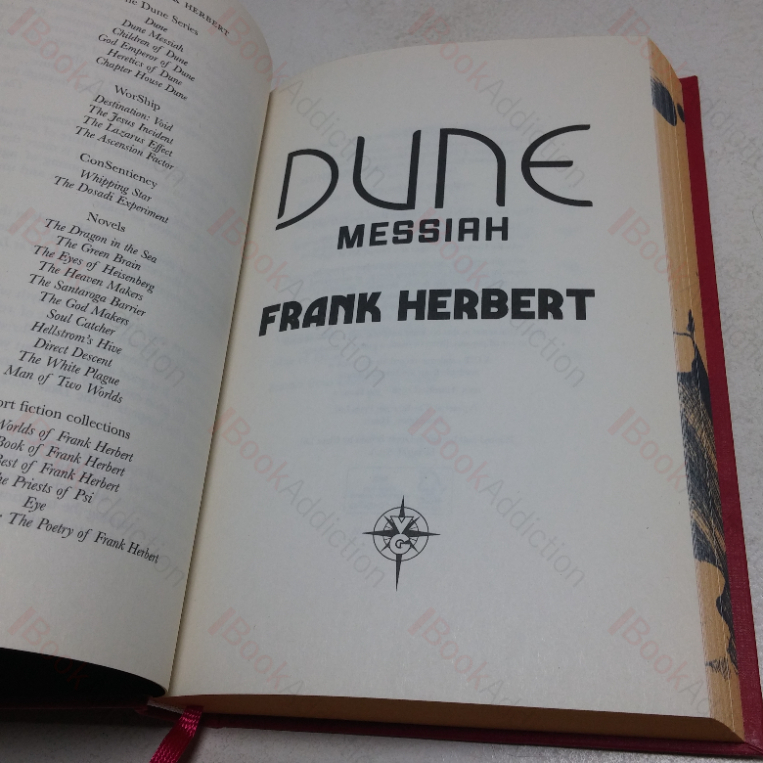 First thus (Dune Messiah was first published in the UK by Victor Gollancz in 1969).  Special edition.  292pp.  Red cloth-covered boards with gilt lettering on spine.  Illustrated endpapers.  Text block edges sprayed yellow with image on the fore edge.  Red silk ribbon marker bound in.  8vo.  Volume is neat, clean, bright and tight throughout.  Illustrated, laminated dust wrapper, just a little shelf worn.  A lovely copy of this special edition published alongside the release of the Dune films.