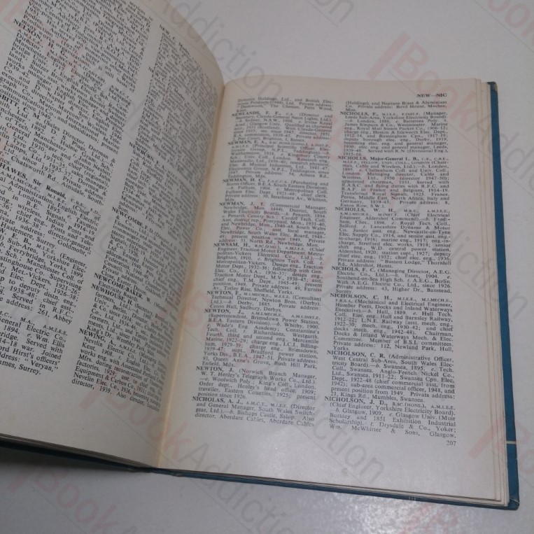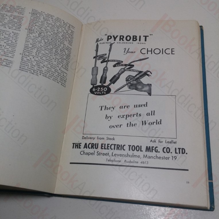 1950’s directory for the electrical profession and industry with details of all the men and women in prominent positions throughout the field and obituaries of those who have died since the last publication.