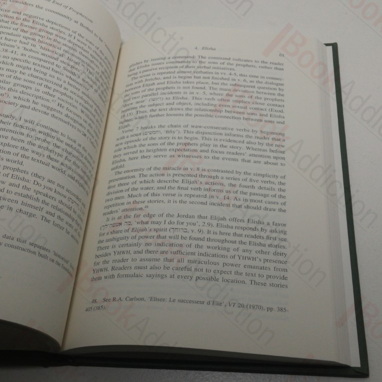 200pp. Dark green cloth-covered boards; gilt titles and motif on front, gilt titles on spine. 8vo. A very neat, clean, bright and tight volume. Chapters include Introduction; Narratology; The Text, the Reader and the Reading; Elisha; Conclusion.